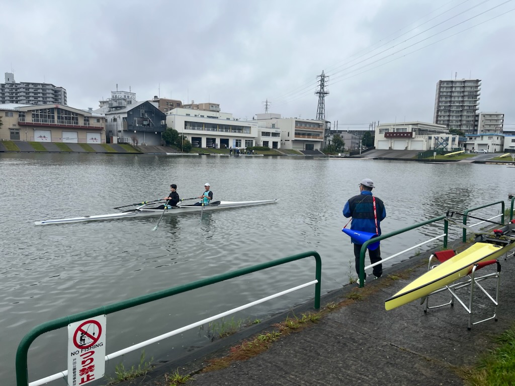 この日は花岡が不在でしたが、ダブルスカル2艇にシングルスカル1艇が出艇。今後さらに2艇ほど増える予定で、すべてのクルーに並走するのは現実的に難しくなってきます。